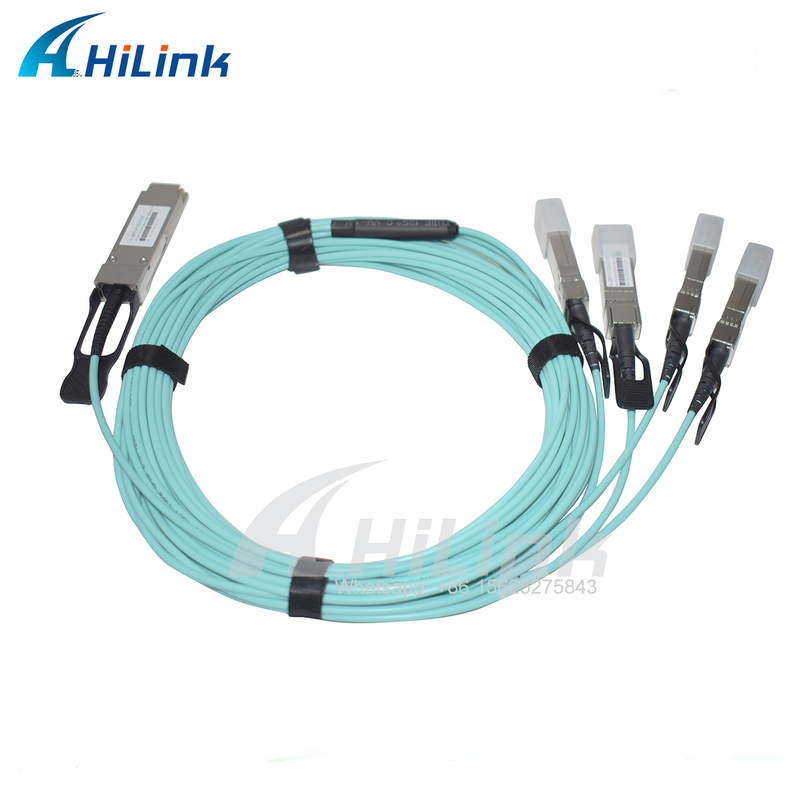 Hilink's QSFP+ to 4xSFP+ 10G active optical cables are suitable for very short distances and offer a very cost-effective way to establish a 40-gigabit link between QSFP ports to SFP+ 4 ports of switches within racks and across adjacent racks.